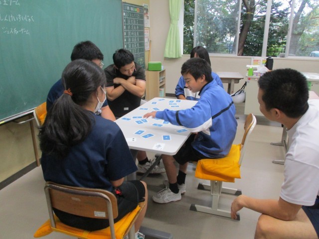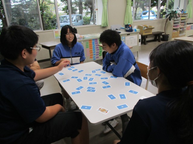 I組1組の6時間目の学活では、どんなレクリエーションをするか話し合いを行いました。その結果、トランプの神経衰弱に決まり、みんなで楽しんで行いました。