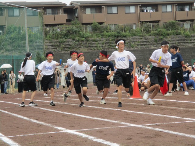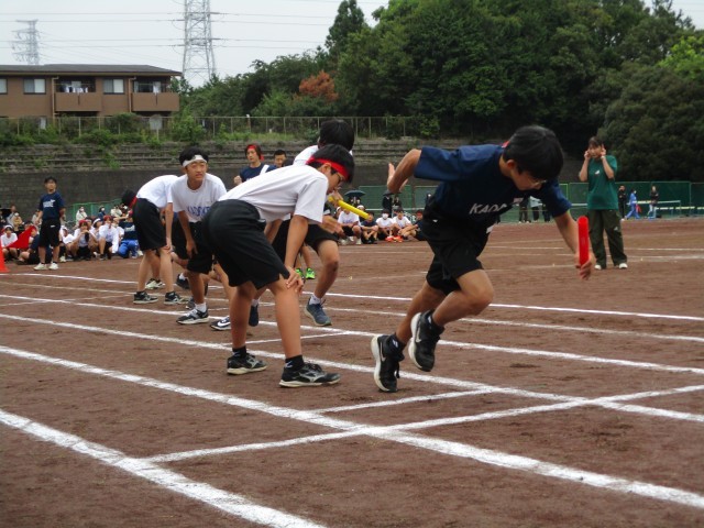最後の競技は各学年ごとの全員リレーでした。転んでも、バトンを落としてもあきらめず、最後までチームのために頑張る姿が輝いてました。