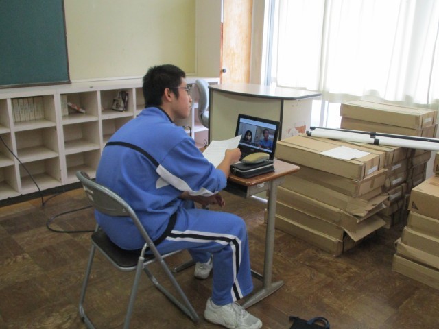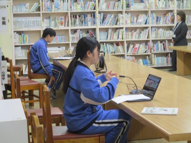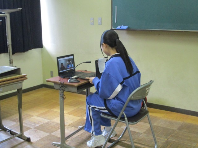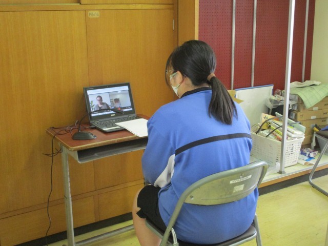 今日は3年生が英語パフォーマンスデイの日でした。オンラインで外国人の先生に、沼津市統一パフォーマンステストの課題に沿った内容について話し、その後1対1のやりとりを即興で行いました。身振り手振りを交えながら、一生懸命伝えようとしている姿が見られました。