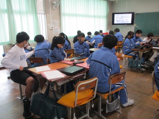 2A言語科「読解の時間」 未来の職業がどのようになっているのかプレゼンをするために、調べたり考えたりしていました。