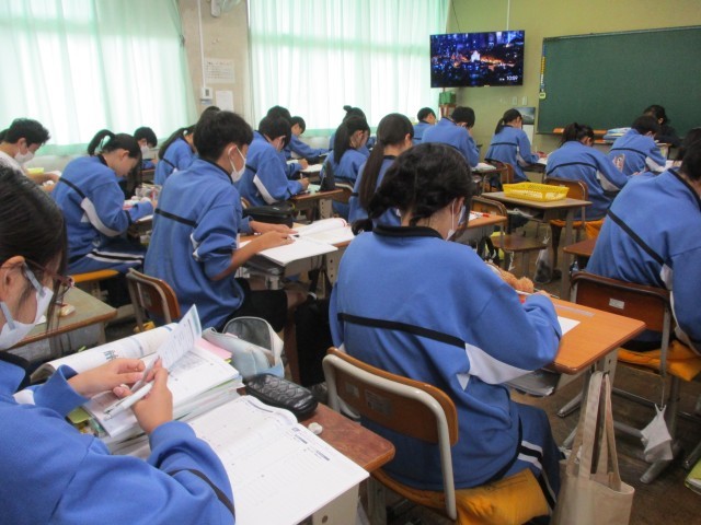 2D英語 明日の期末テストに向けて、単元テストの内容を確認していました。