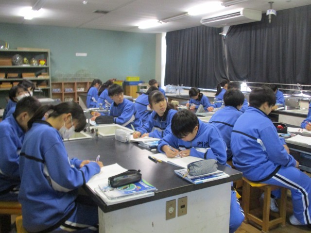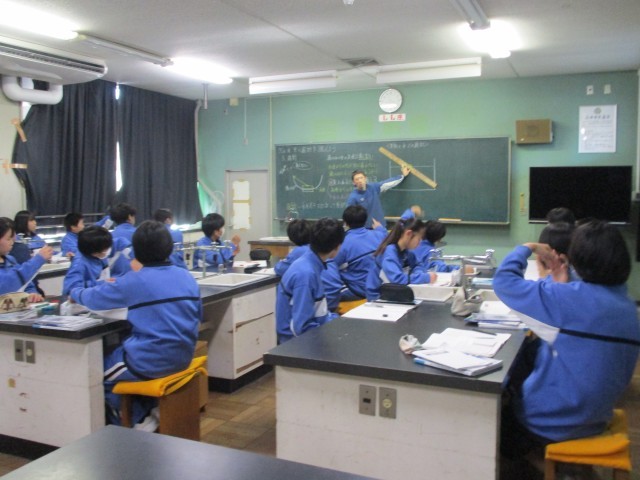 1C理科 「光の屈折を調べよう」という課題で、ちょうど実験が終わったところだったようです。