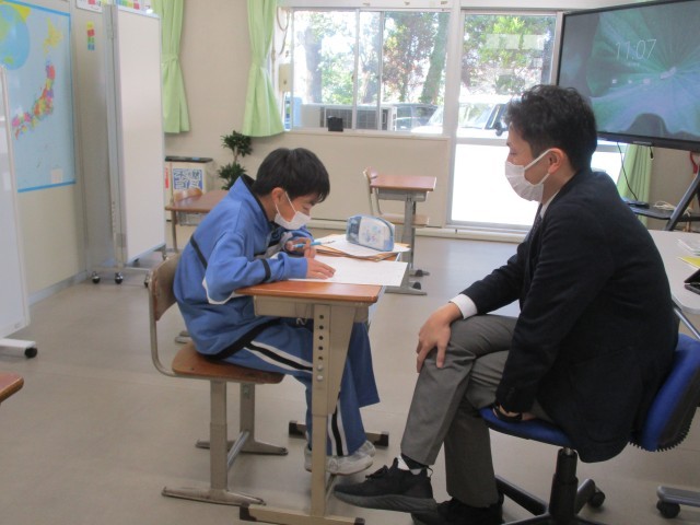 I組1組の授業は国語でした。プリントを使って学習していました。今日の午前中は2年生が進路先見学会に行っているため、1年生1人だけの学習でした。