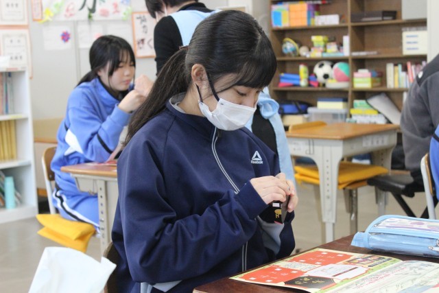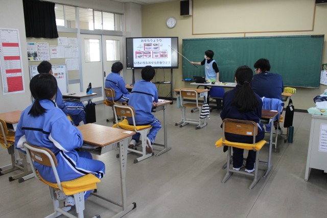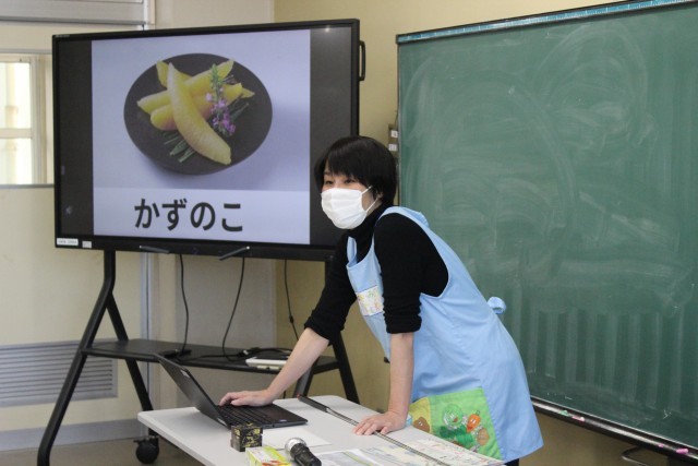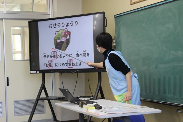 I組は栄養教諭の先生を招いて食育の授業を行いました。テーマは「季節を楽しもう」で、「御節」について学びました。それぞれの食材を入れる理由などを考えました。新年に食べるときに思い出したいですね。