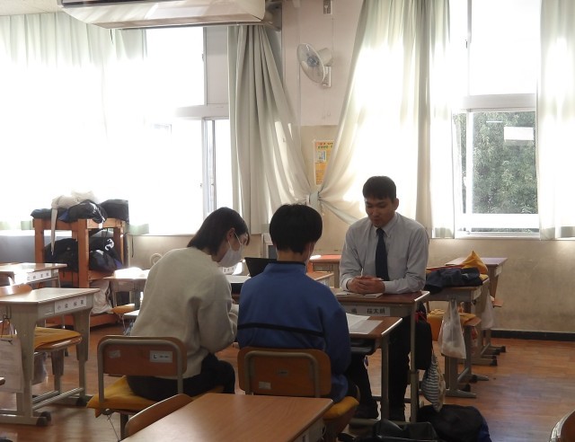 本日より三者面談が始まりました。保護者の皆様、ご来校ありがとうございます。3年生にとっては進路についての大切な面談です。1、2年生にとっても、2学期の成績や学校での様子を直接伝えさせていただく貴重な機会です。ご家庭・学校それぞれにとって有意義な時間となってほしいと思います。