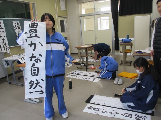 I組の1組では国語の時間に書き初めの練習をしました。みんな、とても真剣に取り組んでいました。
