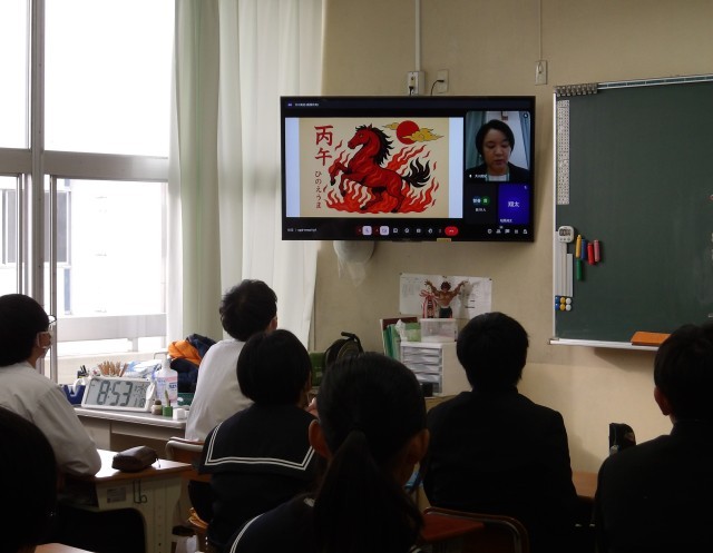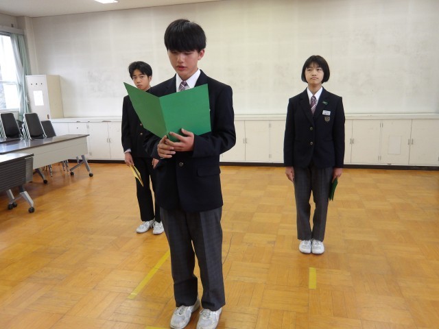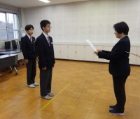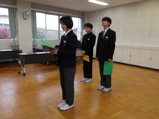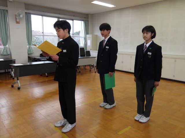 表彰式のあとにリモートで3学期始業式が行われました。各学年の代表から3学期の抱負が述べられました。校長からは午年にちなんだ話や感謝についての話などがありました。1年を締めくくる3学期をいい形でスタートし、来年度につなげて行ってほしいと思います。