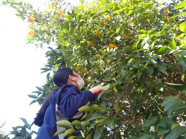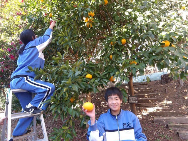 門池の森にあるナツミカンをI組さんが収穫をしてくれました。ナツミカンのジャムを作る予定です。出来上がりが楽しみです。