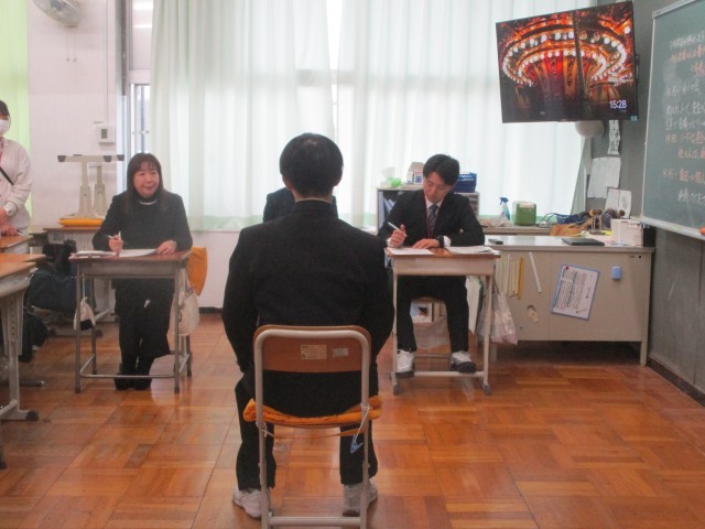 1月20日 3年生面接練習 公開日 2026/01/20 更新日 2026/01/20 地域連携 地域からお越しいただいた面接官の皆様からは、「みんなの緊張が良く伝わってきました。」「しっかり受け答えができている生徒が多かったので、本番でも悔いがないように頑張ってほしいです。」とお誉めや励ましの言葉をいただきました。 お越しいただいた地域の皆様、御協力ありがとうございました。 なお、この面接練習は、今日から22日まで3日間行います。 +1 いいね(0)