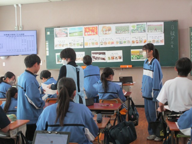1B学活 門池小の栄養教諭の先生が来てくださり、食育の授業を行いました。沼津の特産物を使ったB級グルメを考えるという授業でした。