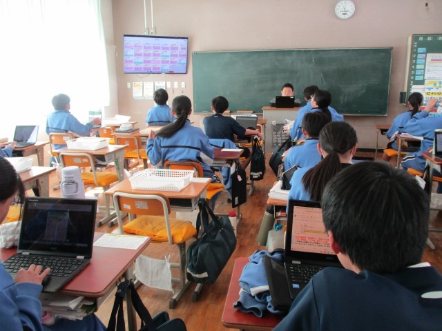 1D保体 新しく導入されたロイロノートを使って、長距離走の振り返りを行っていました。