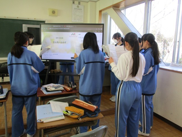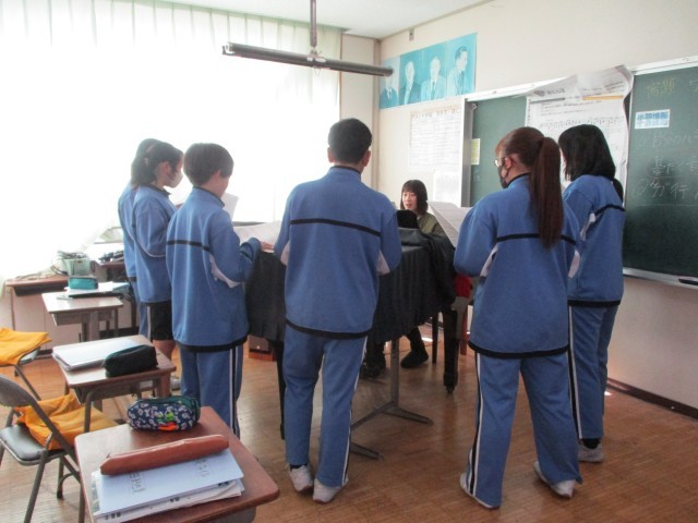 1E音楽 3年生を送る会に向けて、合唱の練習を行いました。