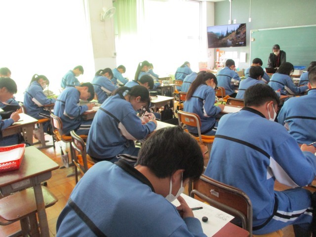 3A理科 公立入試に備え、これまでの内容の復習を行いました。静かに集中して取り組んでいました。