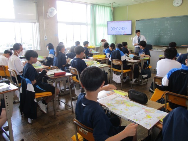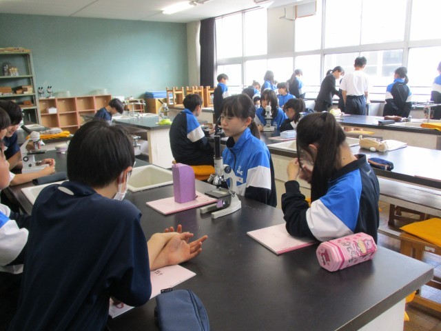 4月20日 授業の様子 公開日 2026/04/20 更新日 2026/04/20 1年部 1年生の授業の様子です。 1A技術 「ひみつ道具は実現している?」というテーマで、技術の進歩について考えました。 1B社会 地図帳を使って様々な国を探し、その特徴について学習しました。 1C理科 理科室で顕微鏡の使い方を学習しました。 1D数学 「数の大小をす直線を利用して確認しよう」という課題に真剣に取り組みました。 +2 いいね(0)