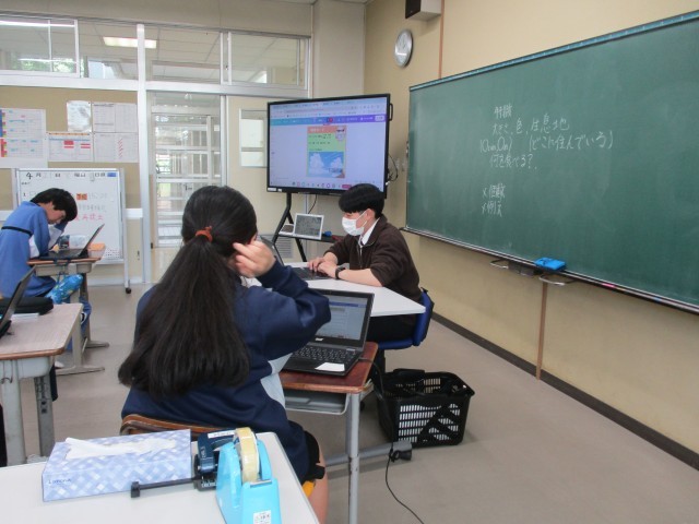 I組の理科の授業の様子です。自分が好きな動物の特徴について調べました。