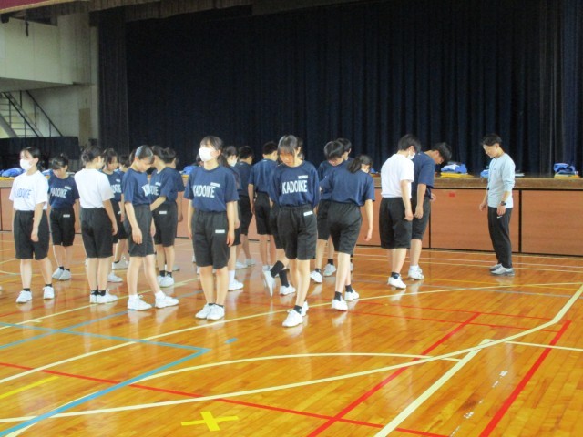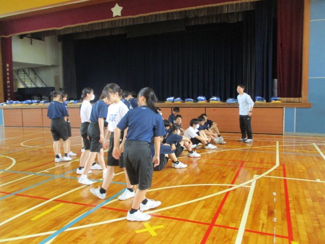 2C保体 集団行動の「まわれ右」をきれいに行う練習をしました。