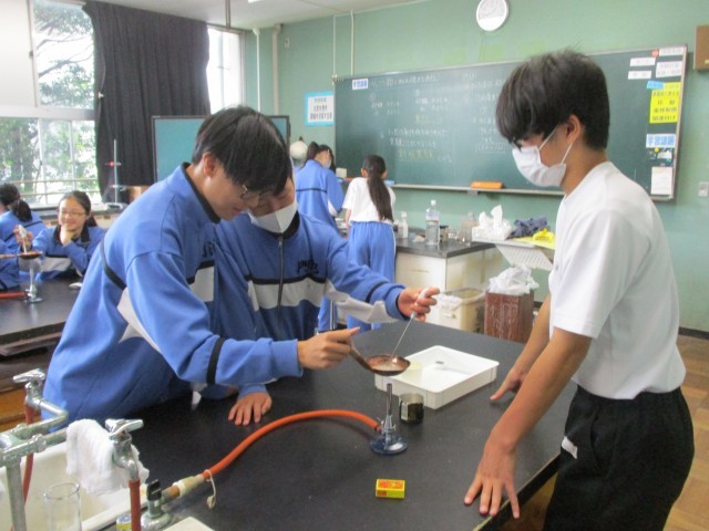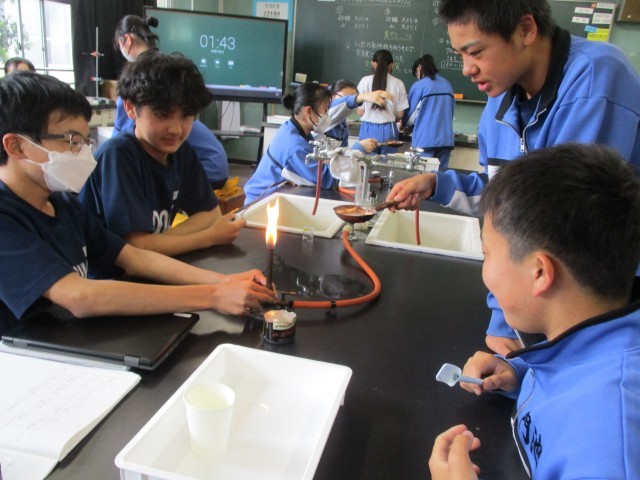 2E理科 「べっこう飴とカルメ焼きを作ろう」という課題でガスバーナーを使っていました。