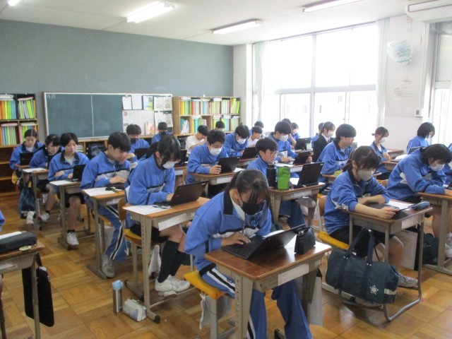 3A 全国学力学習状況調査の英語リスニングと質問紙調査の様子です。