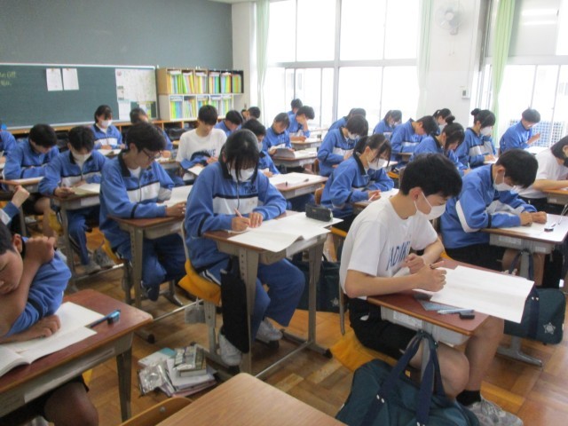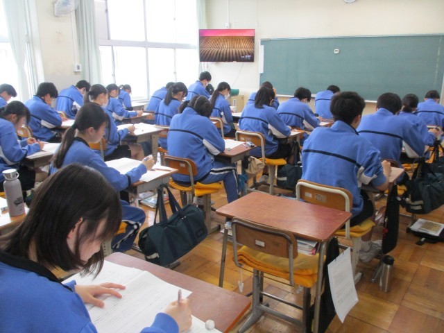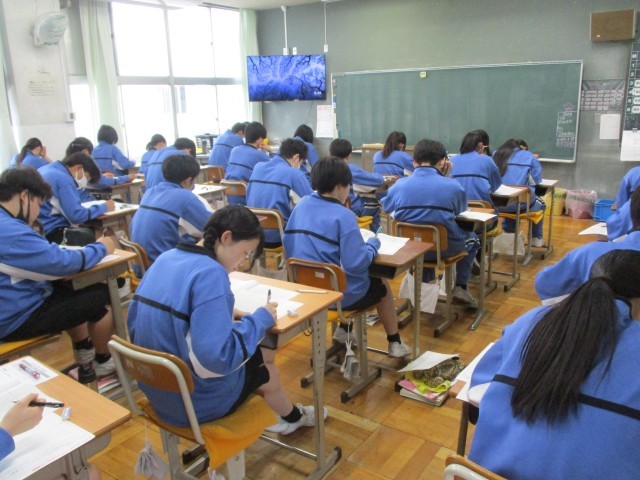 3年生は昨日に引き続き、全国学力学習状況調査を行いました。今日は国語と数学の調査でした。