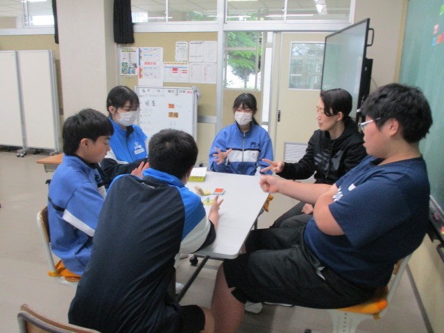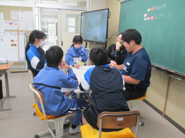 I組はみんなでカードゲームを行っていました。楽しそうにコミュニケーションをしていました。