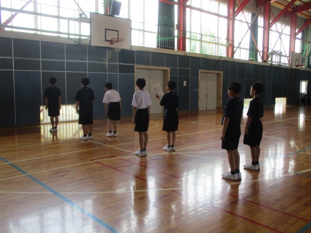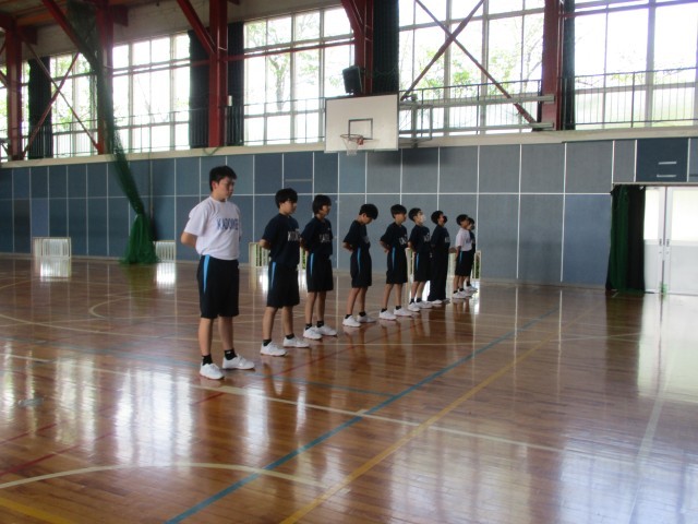 1B保体 グループごとに集団行動の練習を行いました。号令の係の生徒が、大きく爽やかな声を出していて、とても素晴らしかったです。