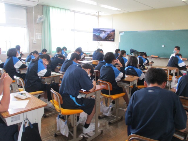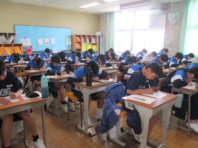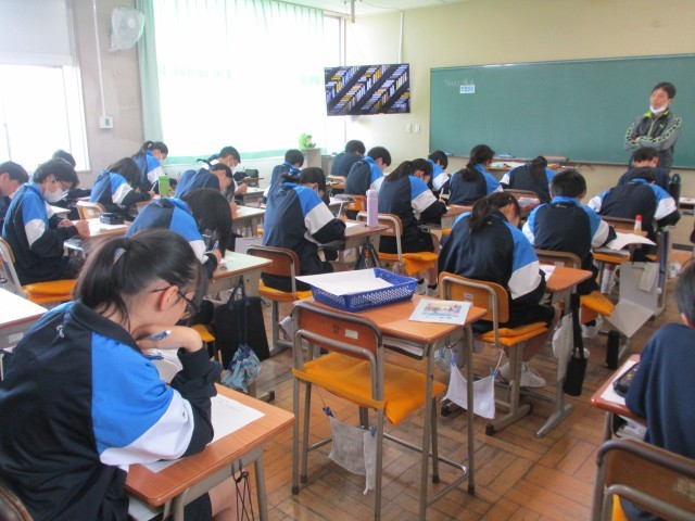 1C英語 ローマ字の小テストを行っていました。とても真剣にテストを受けていました。