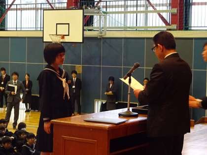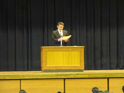 4月7日 始業式・任命 公開日 2017/04/09 更新日 2017/04/09 学校行事 着任式に続き、始業式です。 校長先生の式辞では、「あいさつ日本一」「TRY」「命を大切に」の3点についてお話していただきました。 始業式終了後は、生徒会長任命を行いました。 いいね(0)
