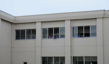 校舎の窓からも会場を望めます。