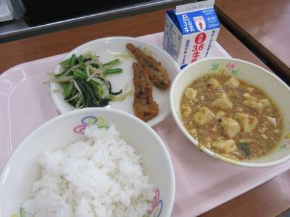 今日の給食 公開日 2017/04/21 更新日 2017/04/21 給食 米飯 麻婆豆腐 小鰺フライ ナムル ピリっと辛い麻婆豆腐にサクサク衣のフライ、さっぱり味のナムル、絶妙なコンビネーションです。 いいね(0)