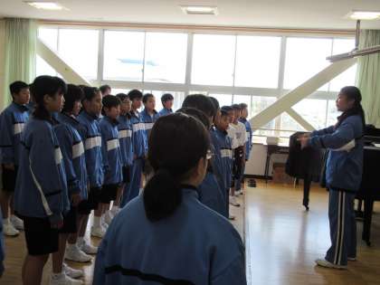 音楽では校歌の練習です。PTA総会前に披露した時よりも上手になっていました。