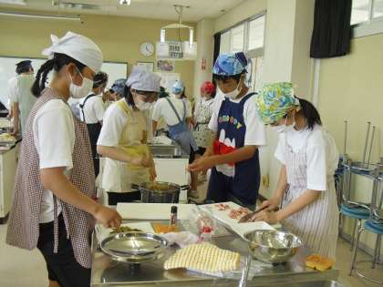 時間内に調理・喫食・片付けを終えるため、グループ内の分担も大切です。