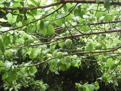 門池の森の木々や草花にとっては恵みの雨でしょうか?雨に濡れた葉は緑が際立ち、生き生きとしているように感じられます。西側入り口の梅の木にはたくさんの実が実っていました。