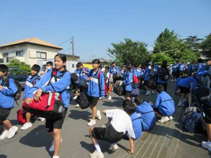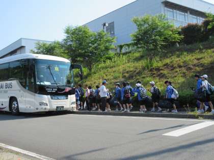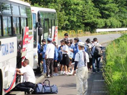 出発式後、バスに乗車です。