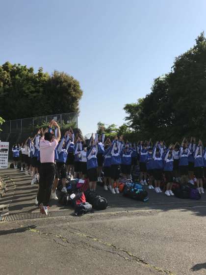 出発式の最後には、スローガンの「達成感 smile 〜 成長 〜」をみんなで唱えながらジャンプです。