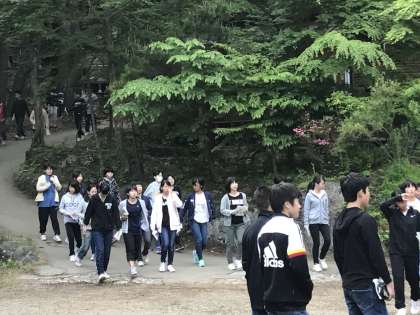 2日目も快晴です。五分前には全員が集合し、朝の集いが始まりました。あたりまえのようでなかなか出来ないことだと、広幸先生からお誉めの言葉をいただいてのスタートとなりました。