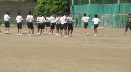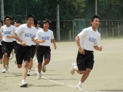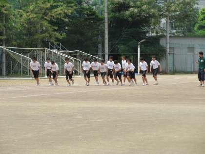 3年生 男子保体の授業です。体力テストの1500m走を行いました。ペアで声をかけたり、タイムを伝えたり。さすが3年男子、スピードが違います。