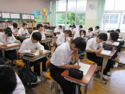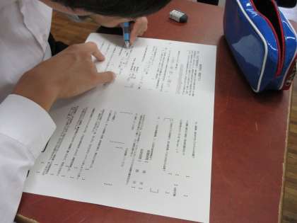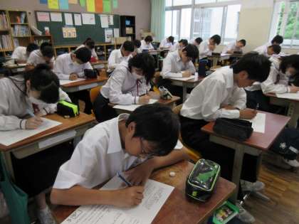 来週に迫った修学旅行。3年生は朝の時間を使って確認テストを行いました。
