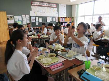 ALTのアナ先生も生徒と一緒に給食を楽しんでくれました。