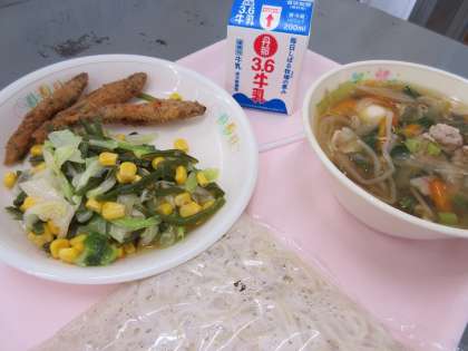 中華めん  牛乳  五目ラーメン  きびなごフライ  茎わかめサラダ