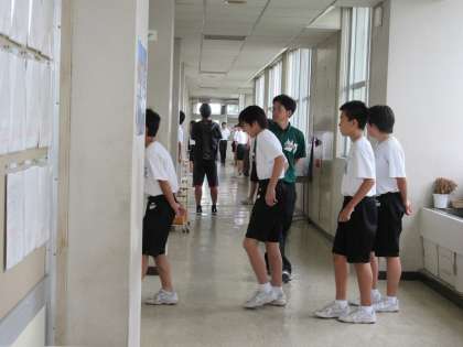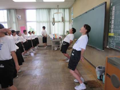 昼休みに練習を重ねた2年生応援団、いよいよ今日から帰りの会の時に1年生の指導に回ります。まずは教室に入る姿で1年生に見本を示します。
