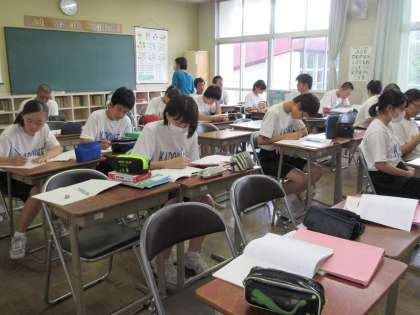 3年生 英語の授業はALTのアナ先生と1対1でパフォーマンステストを行いました。