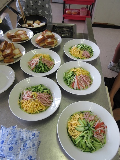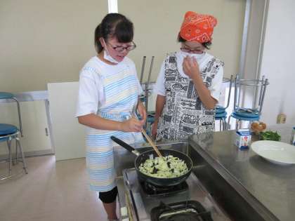 自然教室真志合宿での実践、校内での調理実習を重ね、随分と手際よく、また班によっては余裕を見せて作業を進めていました。