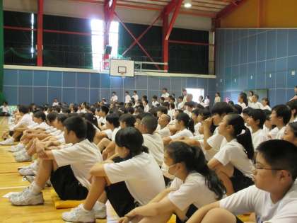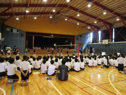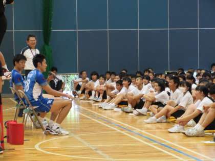 本校男女バレー部との練習・ミニゲームでは、プロ選手の迫力にどよめきました。一転、生徒の質問に答えて下さる場面では、お二人の気さくなお人柄もあり、場内は和やかな雰囲気に包まれました。お二人のプレーやお話から、学ぶことがたくさんありました。