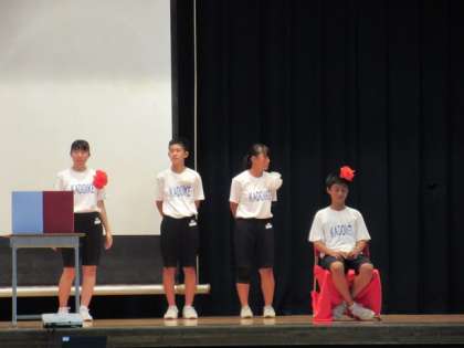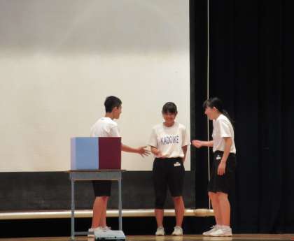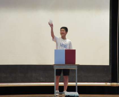 A組はクラスカラーが赤なので自動的に紅軍決定です。全校生徒の視線が集中する中、厳正にくじ引きが行われました。結果は
