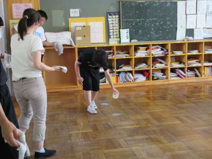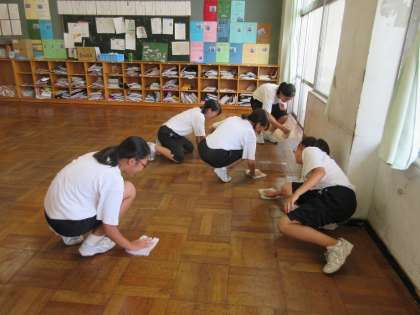 放課後、環境美化委員とボランティアで教室のワックスがけを行いました。