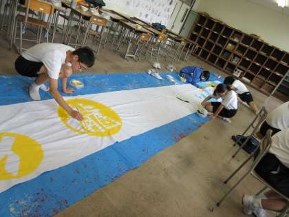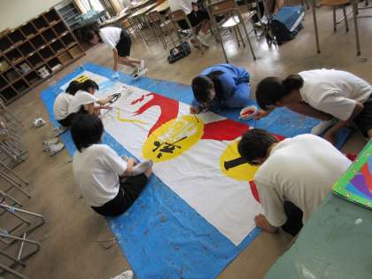 今年も美術部総力をあげて渓流祭の横断幕を作成中です。