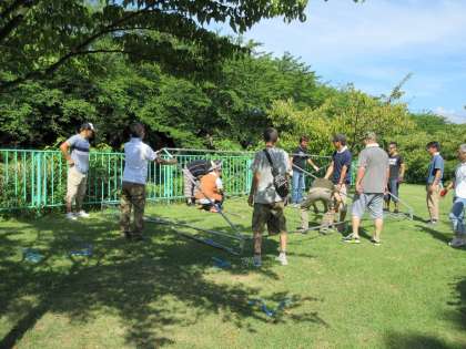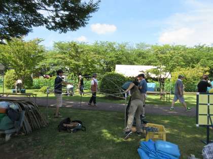 会場設営のため、中学生もボランティアで参加してくれています。朝は機材運搬。テントの組み立てはお父様方がリードしてくださいました。