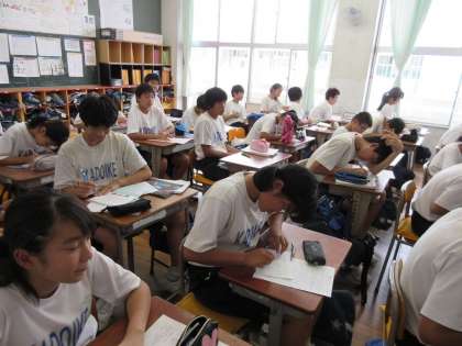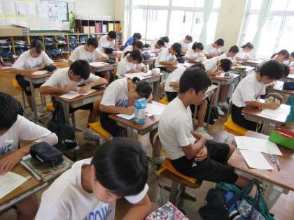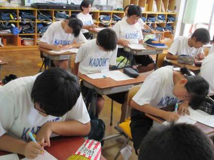 2年生は10月末に行う職業体験にむけて、体験先候補をあげたり、志望動機を記入したりしました。資料をじっくり読んで考えたり、友達に相談したり、就職活動時のエントリーシートに記入しているような感じでした。それぞれの受け入れ先で、貴重な体験が待っています。楽しみですね。