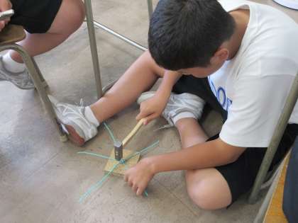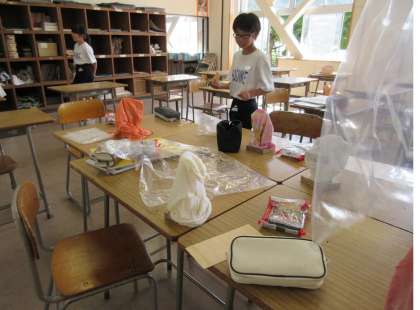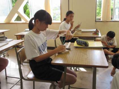 1年生の美術です。自分の手をモデルに、立体作品を制作します。