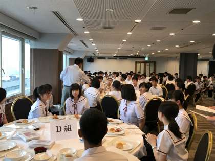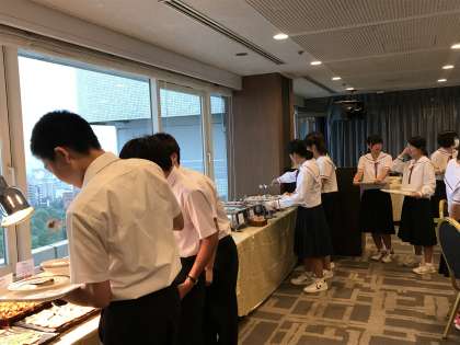大阪は雨の朝になってしまいました。朝の会の後、朝食はバイキングです。